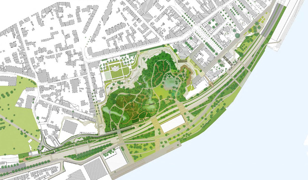 Le Jardin révèle un vaste bassin naturel de 700m² d’espace de baignade, entouré d’une plage verte. L’ensemble permettra aux familles de trouver la fraîcheur et les plaisirs de l’eau en plein cœur de la ville, toute l’année.